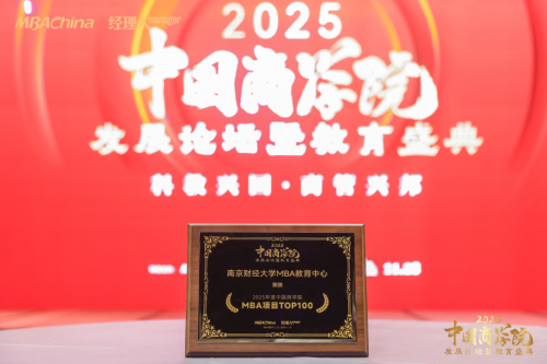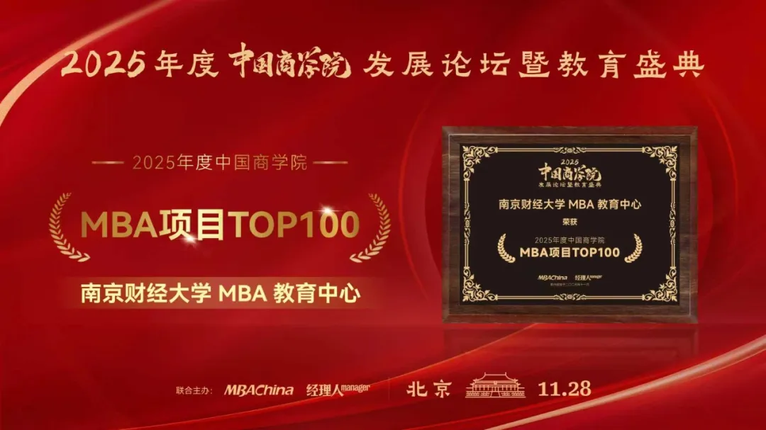 依托全程双元育人体系的深厚积淀,南京财经大学MBA教育中心荣获“2025年度中国商学院MBA项目TOP100”。